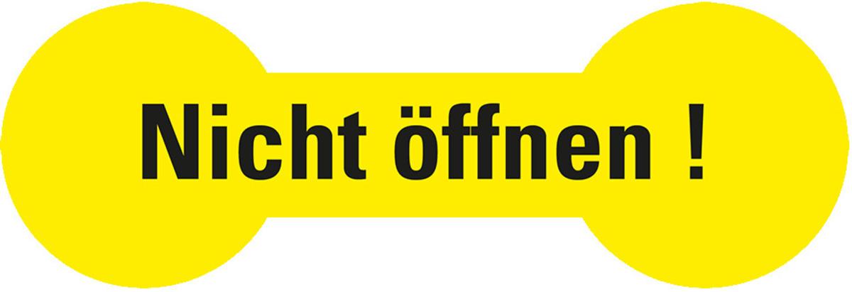 Das Sicherheitssiegel mit dem Aufdruck "Nicht öffnen!" eignet sich zum Versiegeln von beispielsweise Schränken, Behältern oder Verpackungen. Bei Manipulation zerreißt es und dient somit zum Schutz vor unbefugtem Zugriff.