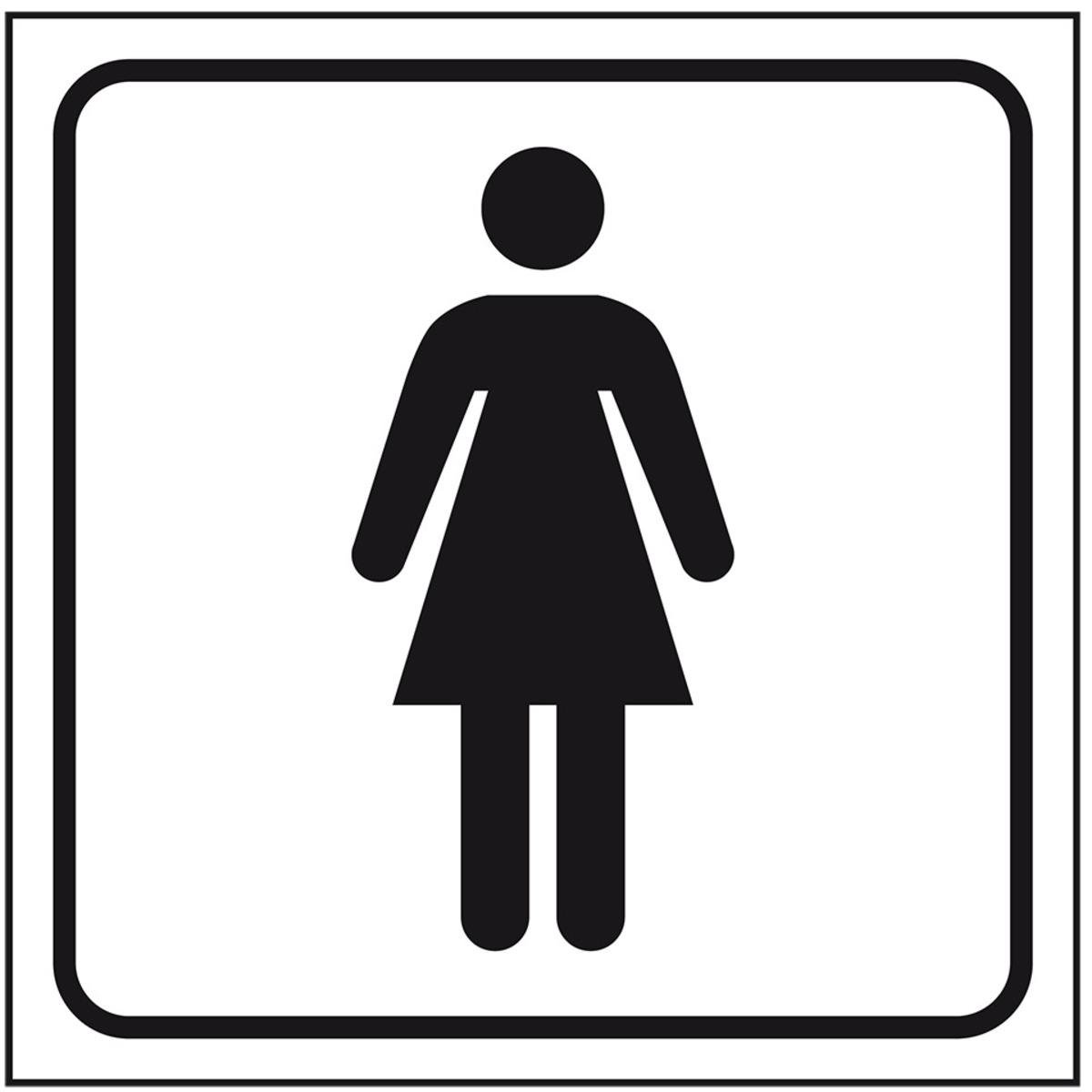 Auswahl: Standard Piktogramm WC Damen, weiß/schwarz, Folie, selbstklebend, 150x150mm