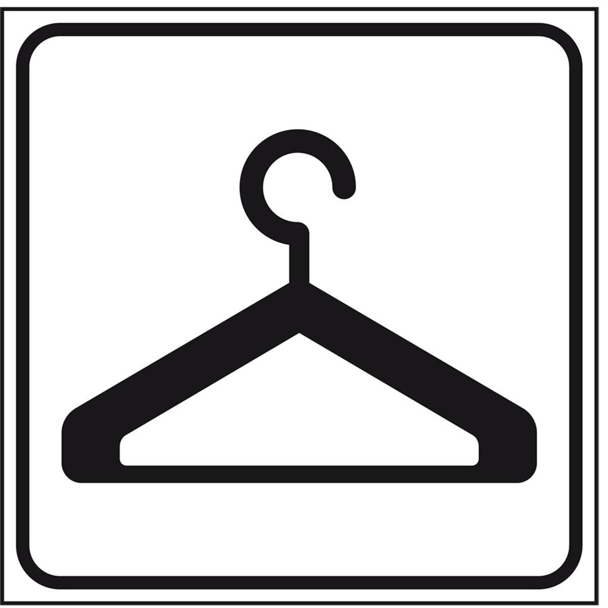Auswahl: Standard Piktogramm Kleiderbügel, weiß/schwarz, Folie, selbstklebend, 150x150mm