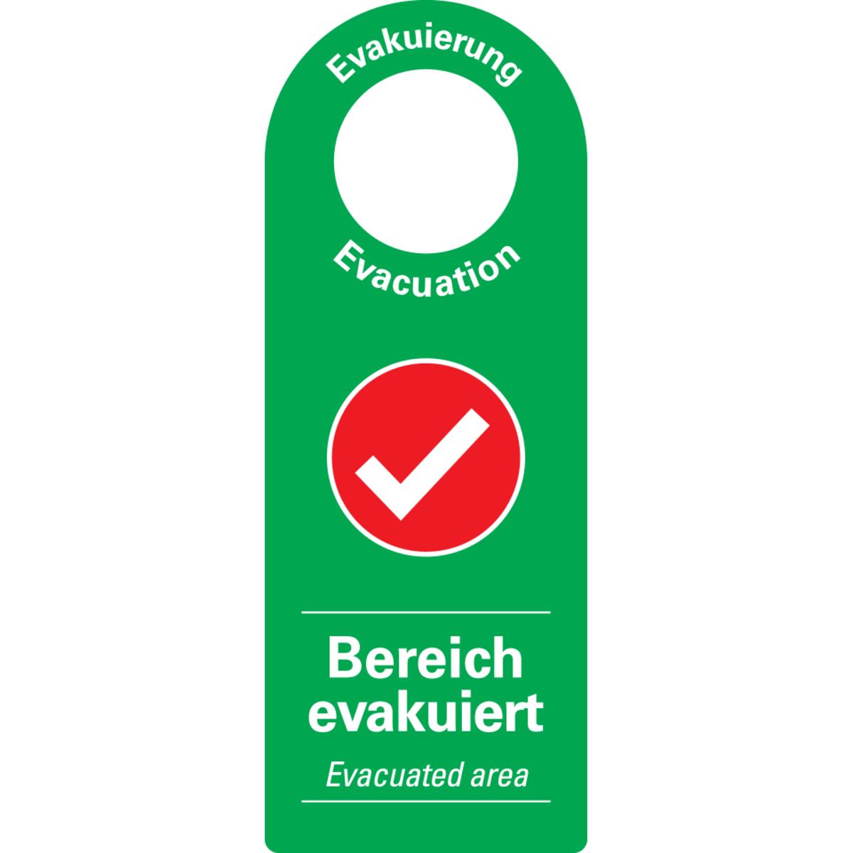 Auswahl: Türgriffanhänger Evakuierung Bereich evakuiert, grün, Kunststoff, 70x185mm, 10/VE