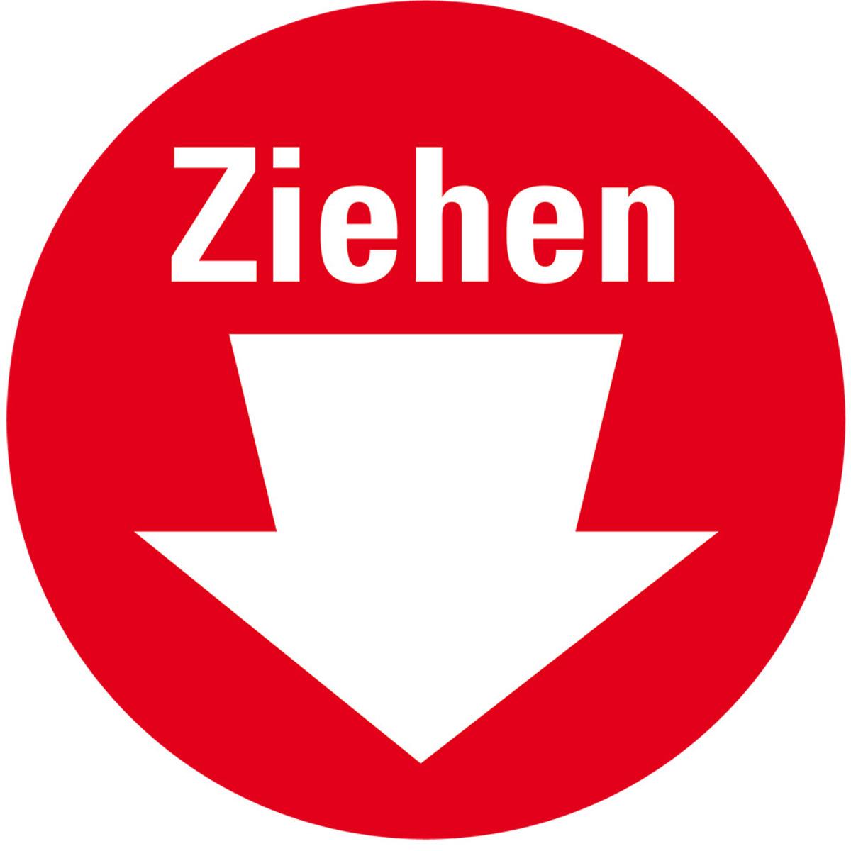 Auswahl: Türhinweis Ziehen, rot/weiß, Folie, selbstklebend, Ø 100mm