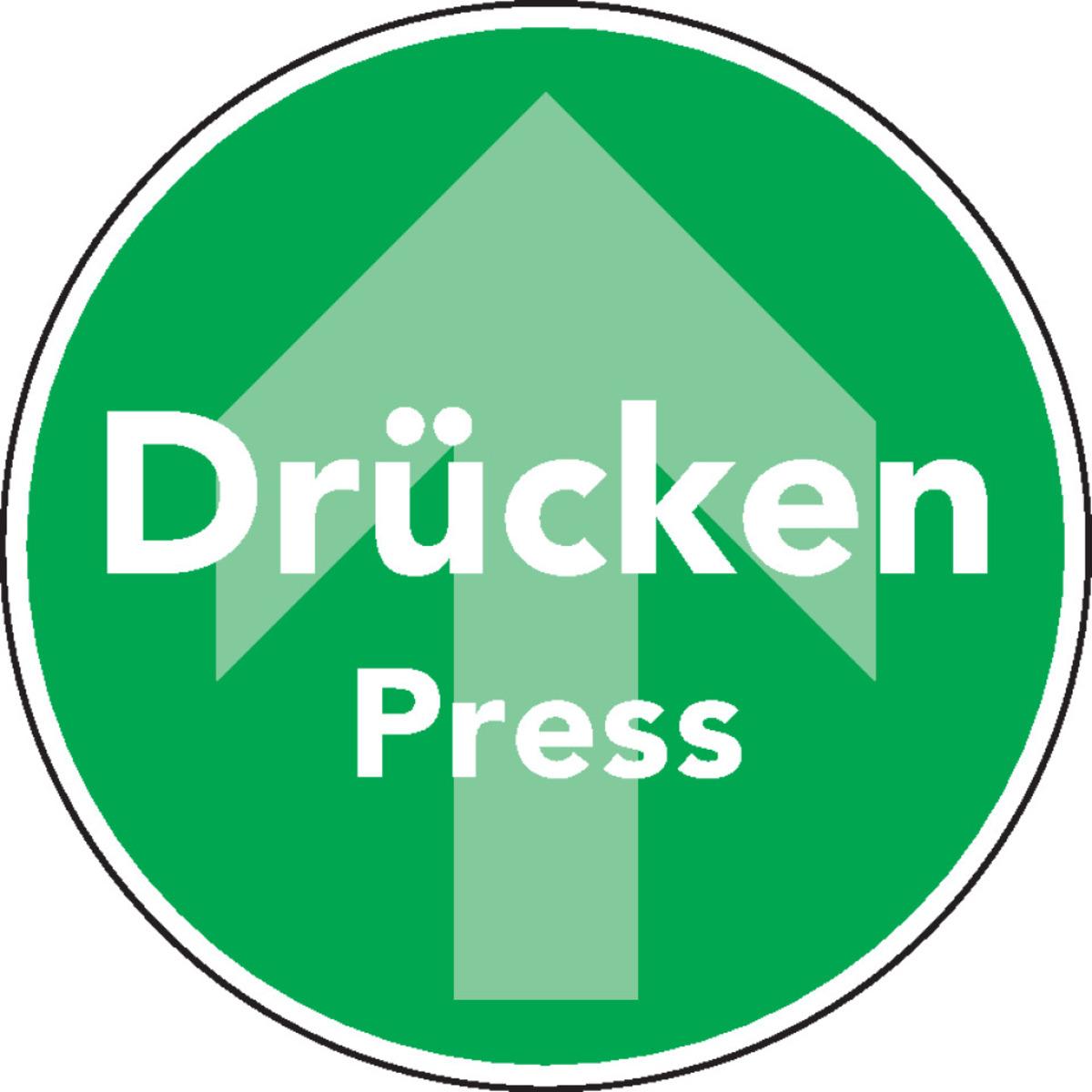 Türhinweise, Drücken oder Ziehen mit Pfeil, 2-sprachig zum Schutz vor Unfällen.