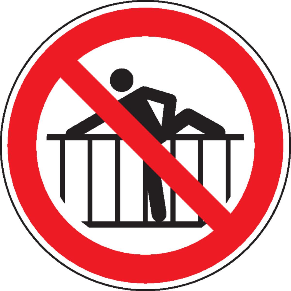 Verbotsschild "Barriere nicht übersteigen" zur Vorbeugung von Handlungen, die Ihre Mitarbeiter in Gefahr bringen oder Unfälle verursachen können