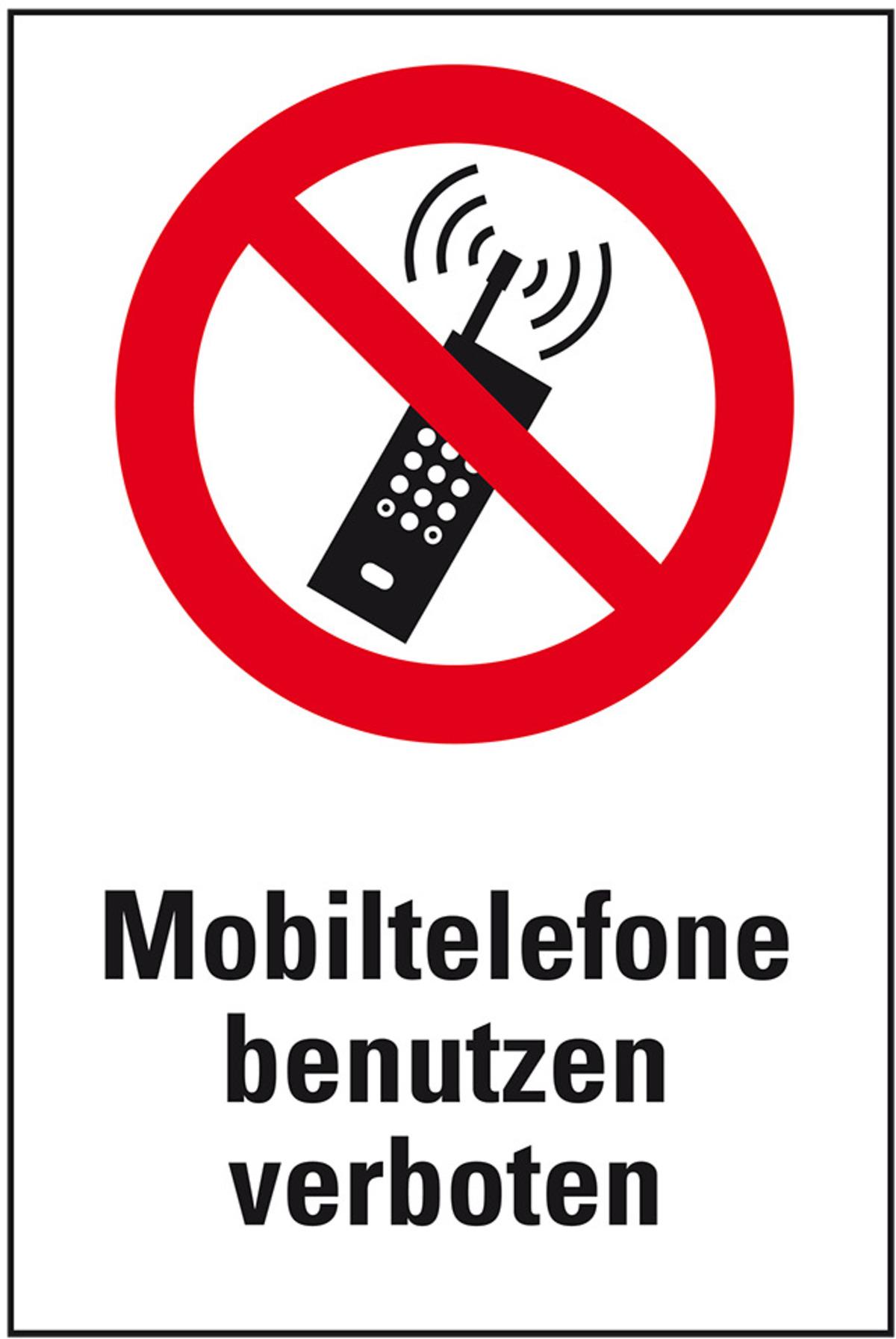 Mit dem Kombi-Verbotsschild "Mobiltelefone benutzen verboten" weisen Sie in Text und Bild auf das Mobiltelefonverbot hin. Durch die Kombination aus Piktogramm und Text ist das Schild besonders gut verständlich.