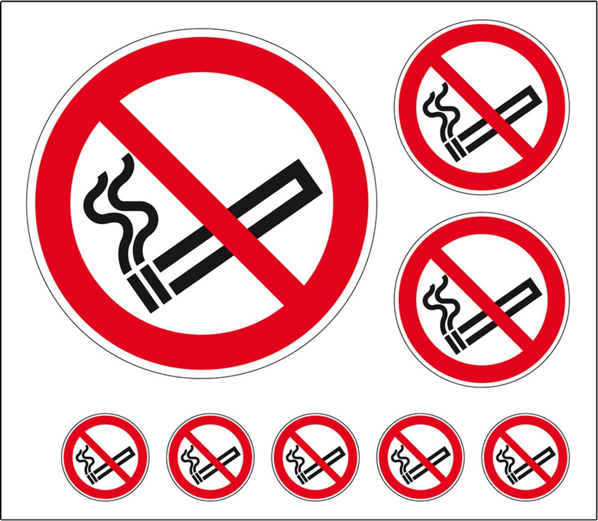 Auswahl: Aufkleber-Set Rauchen verboten, ASR/ISO, Folie, selbstklebend, 210x148mm, 8/Bogen