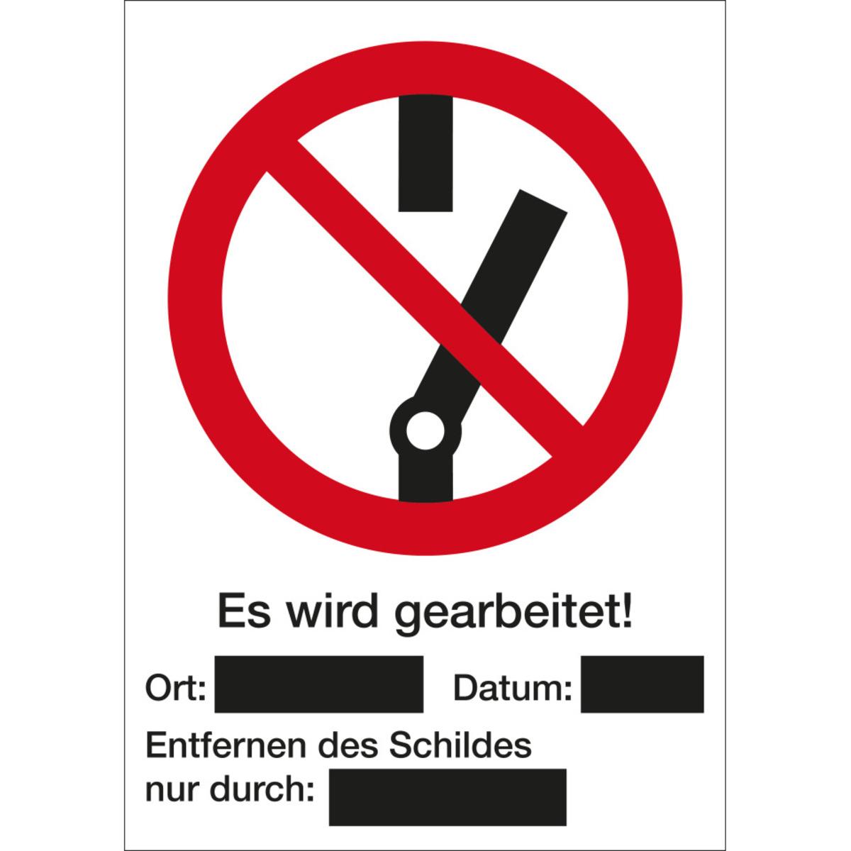 KSIGN Verbotsschild Schalten verboten, es wird gearbeitet Ort: Datum: Entfernen des Schildes nur durch: ASR/ISO