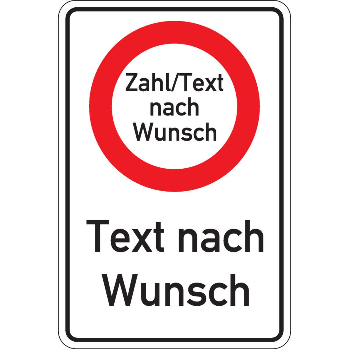Das Verkehrszeichen mit Zahl/Text nach Wunsch und zusätzlichem Textnach Wunsch hilft bei der Durchsetzung spezifischer Verkehrsregeln auf Ihrem Betriebsgelände.