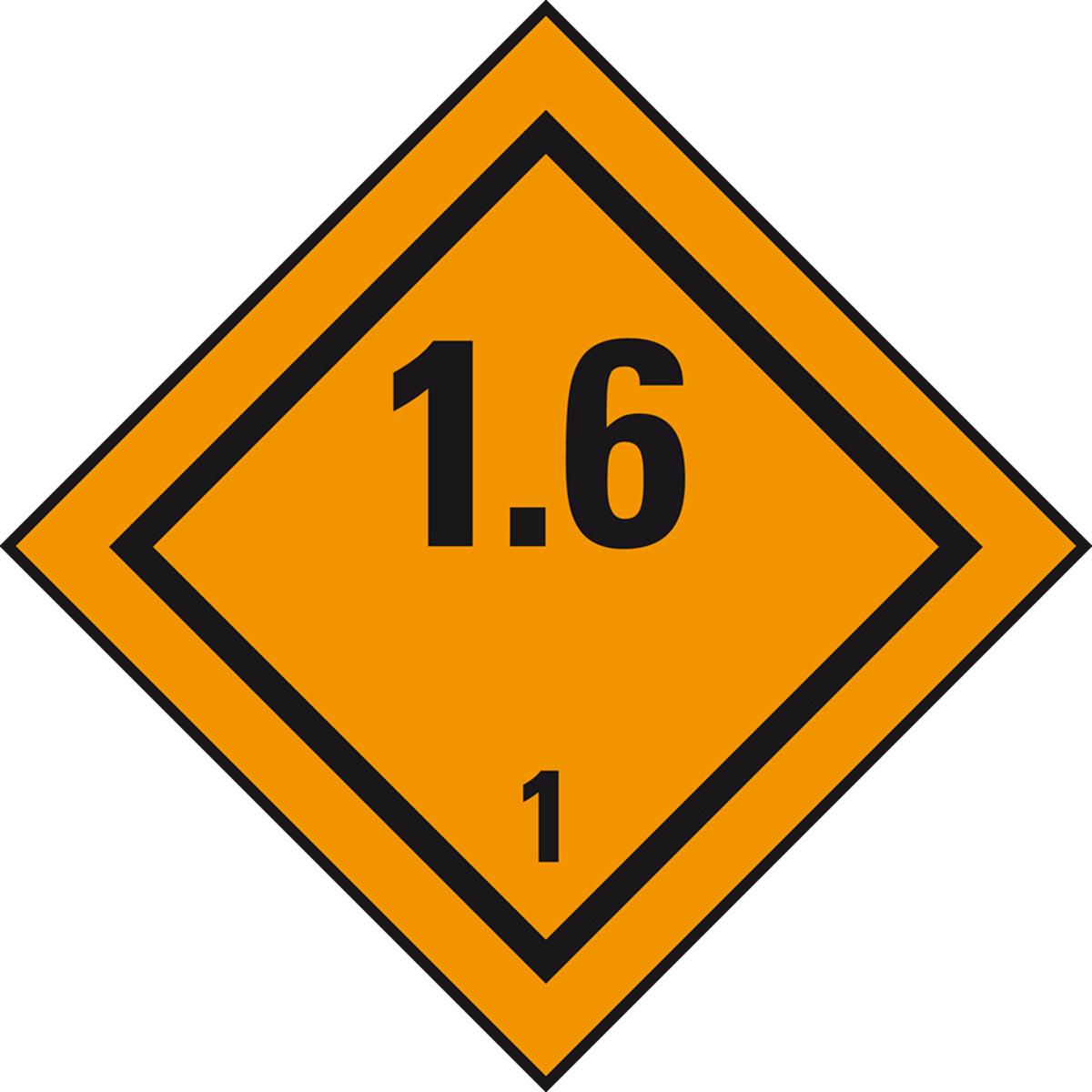 Auswahl: Verpackungskennzeichen Kl. 1.6 Explosiv, Folie, seewasserbeständig, 100x100mm