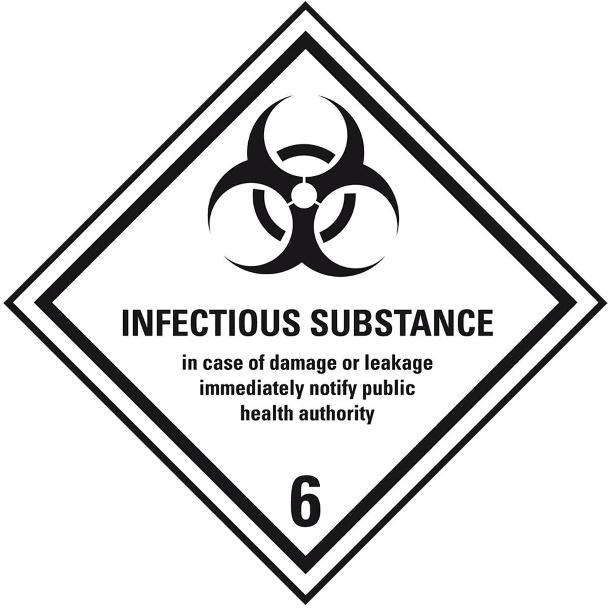Informieren Sie mit dem Verpackungskennzeichen Klasse 6.2 - "Infectious Substance" Spediteure und Empfänger über Inhalt und Handhabung der Versandstücke, um die Sicherheit des Gefahrguts und der beteiligten Personen zu gewährleisten.