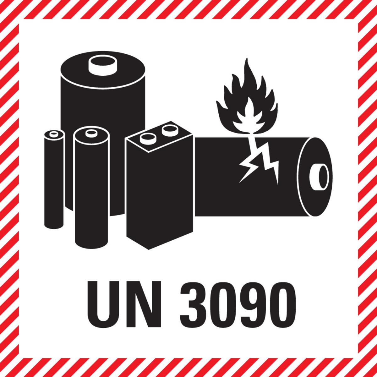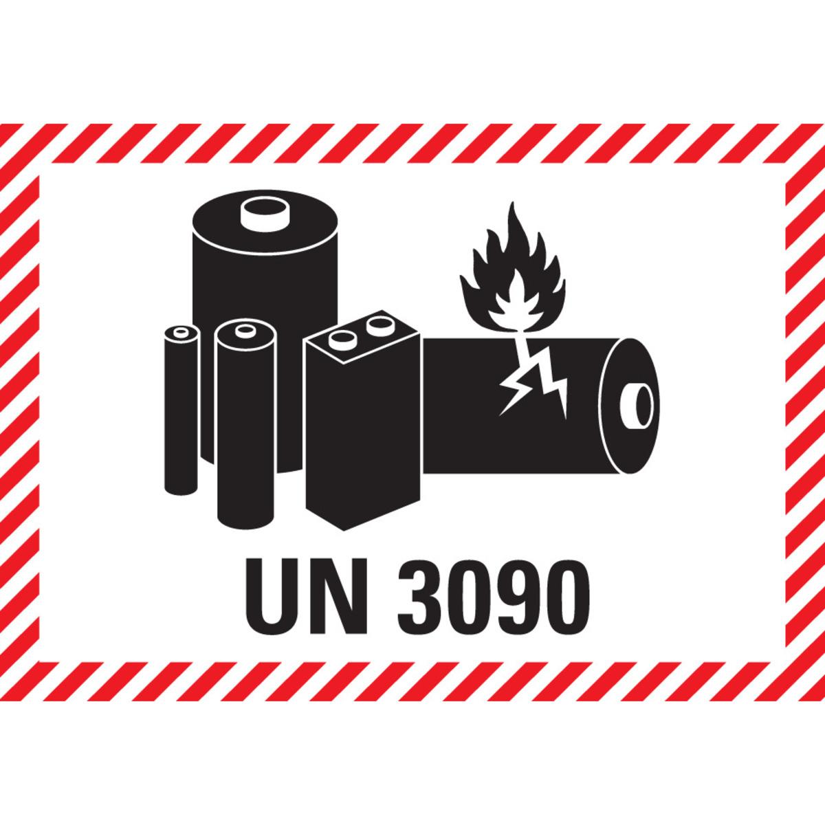 Auswahl: Verpackungskennzeichen UN Nummer 3090, Folie, selbstklebend, 100x100mm