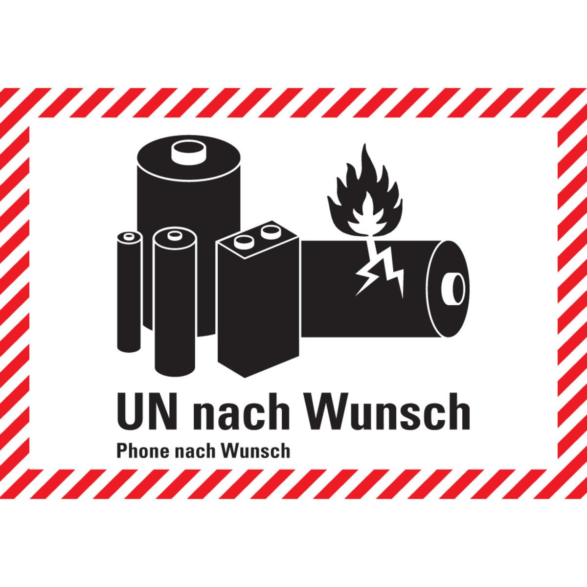 KSIGN Verpackungskennzeichen UN Phone: Text nach Wunsch Batterien