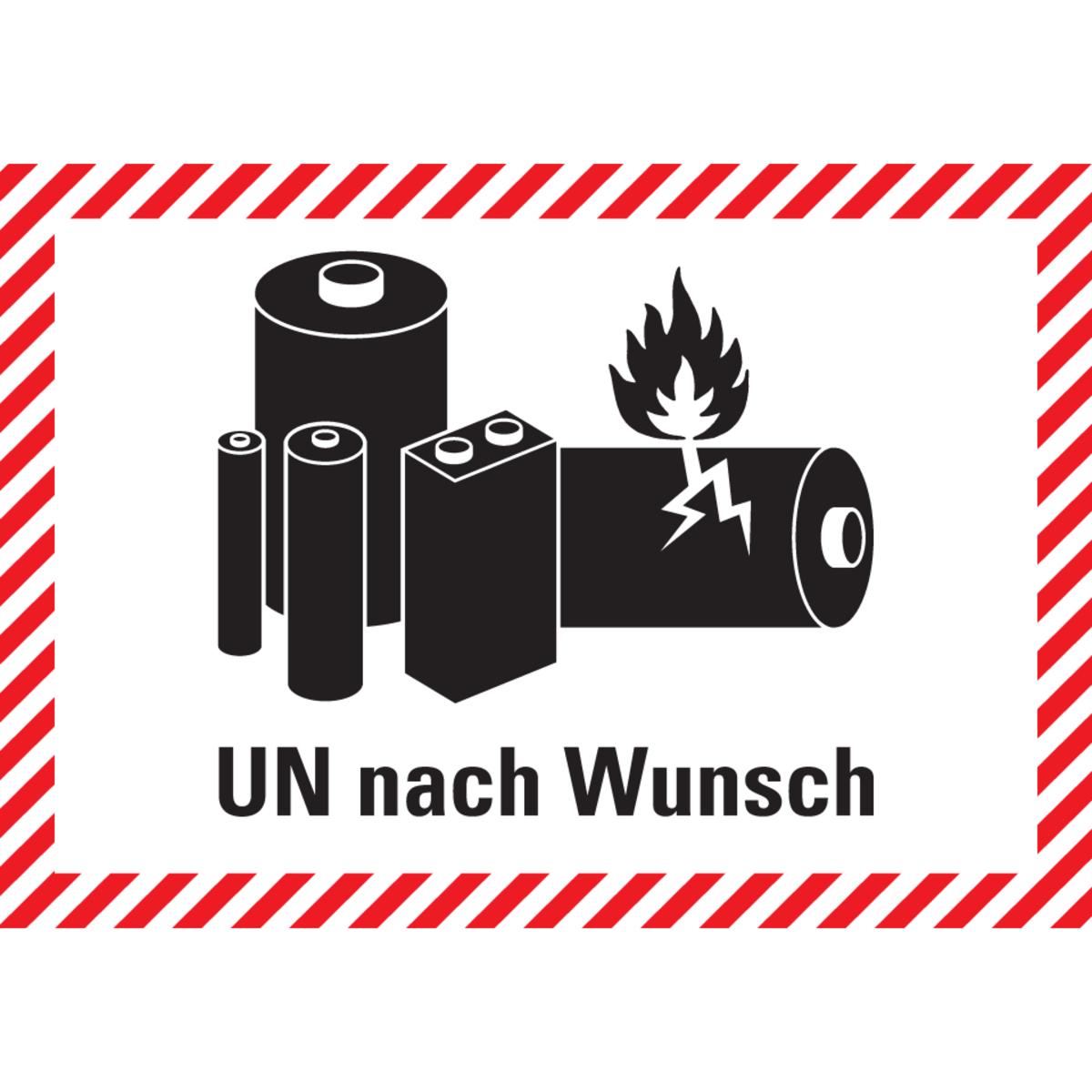 Verpackungskennzeichen für Versandstücke, die Lithiumbatterien enthalten, individualisierbar mit UN-Nummer nach Wunsch