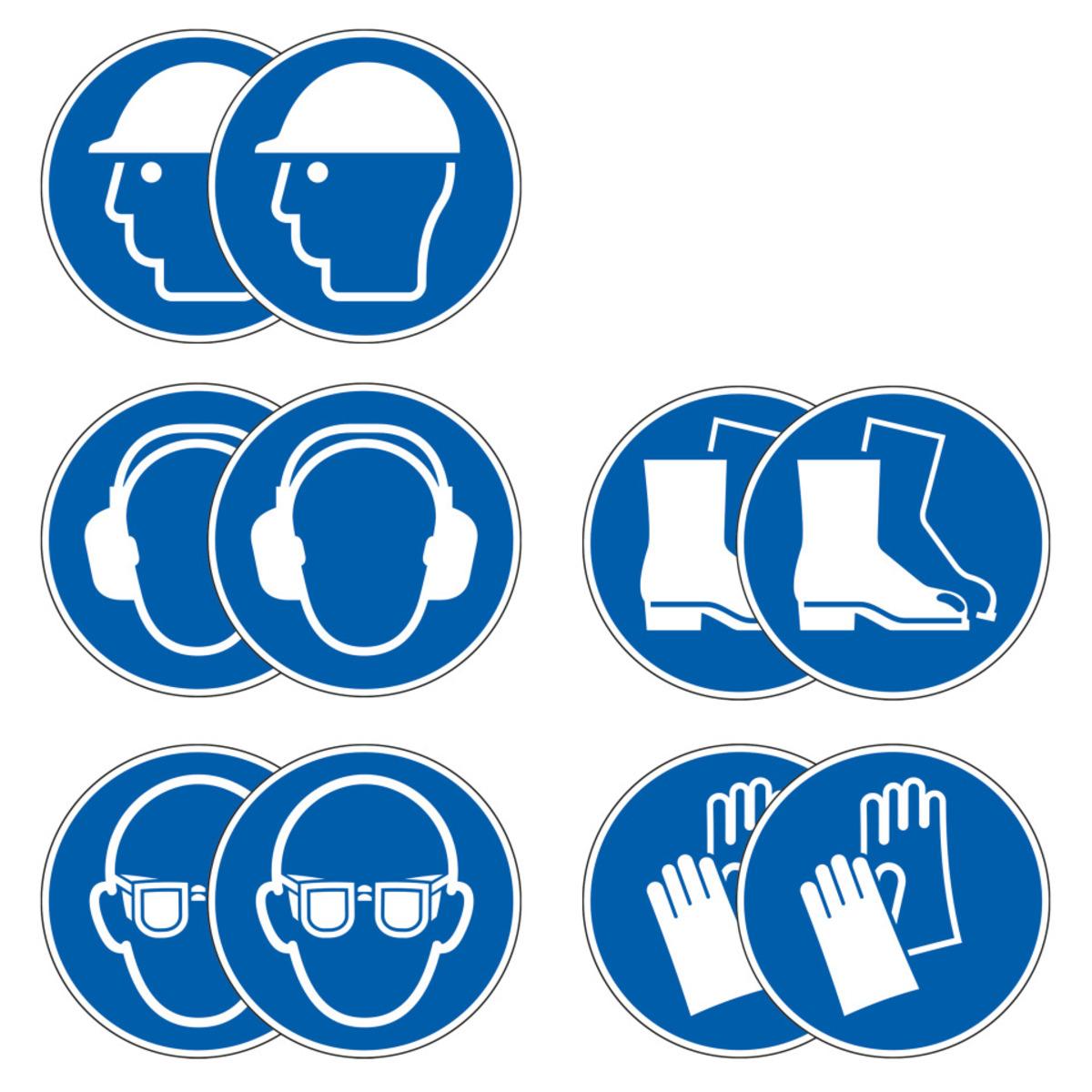 KSIGN Vorteils-Set Gebotskennzeichen Gehörschutz benutzen, Augenschutz benutzen, Fußschutz benutzen, Handschutz benutzen, Kopfschutz benutzen ASR/ISO