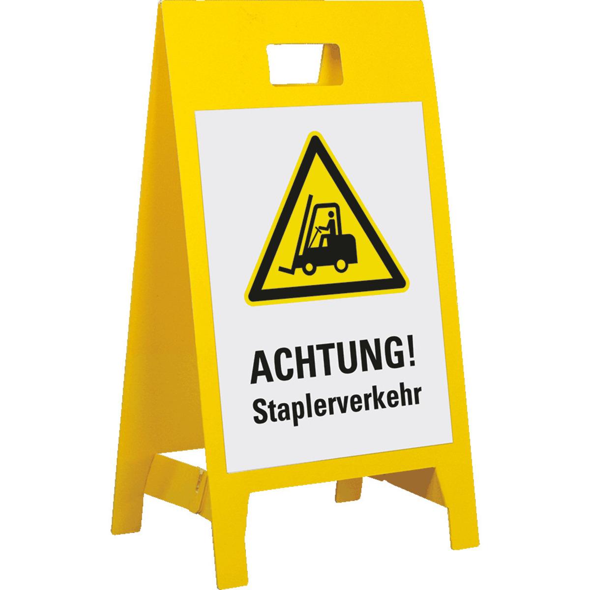 Der leichte Warnaufsteller mit doppelseitigem Warnhinweis ist eine klassisch & einfache Ausführung auf abwaschbaren Wellplatten. Er ist platzsparend zusammenklappbar und wird empfohlen für den kurzfristigen Einsatz im Innenbereich. Zeichen mit gelben Piktos werden auf gelben, mit roten Piktos auf roten Aufstellern geliefert.