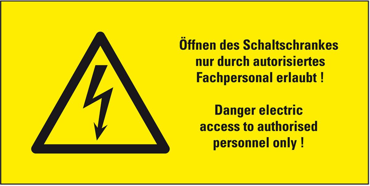 Gefahren müssen gut sichtbar gekennzeichnet werden. Mit dem praxisbewährten Kombi-Warnschild "Öffnen des Schaltschrankes nur durch autorisiertes Fachpersonal erlaubt!" weisen Sie in Wort und Bild auf bestehende Gefahren hin und tragen so zum Schutz Ihrer Mitarbeiter, Besucher und/oder Passanten bei.