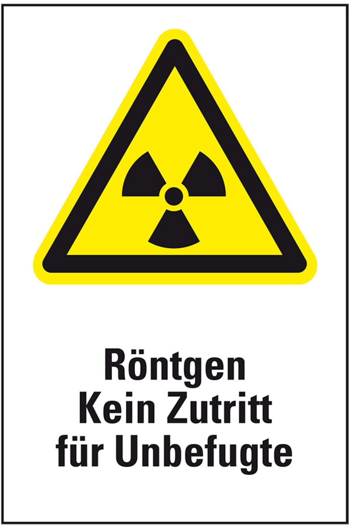 Gefahren müssen gut sichtbar gekennzeichnet werden. Mit dem Kombi-Warnschild "Röntgen - Kein Zutritt für Unbefugte" weisen Sie in Wort und Bild auf bestehende Gefahren hin und tragen so zum Schutz Ihrer Mitarbeiter, Besucher und/oder Passanten bei.