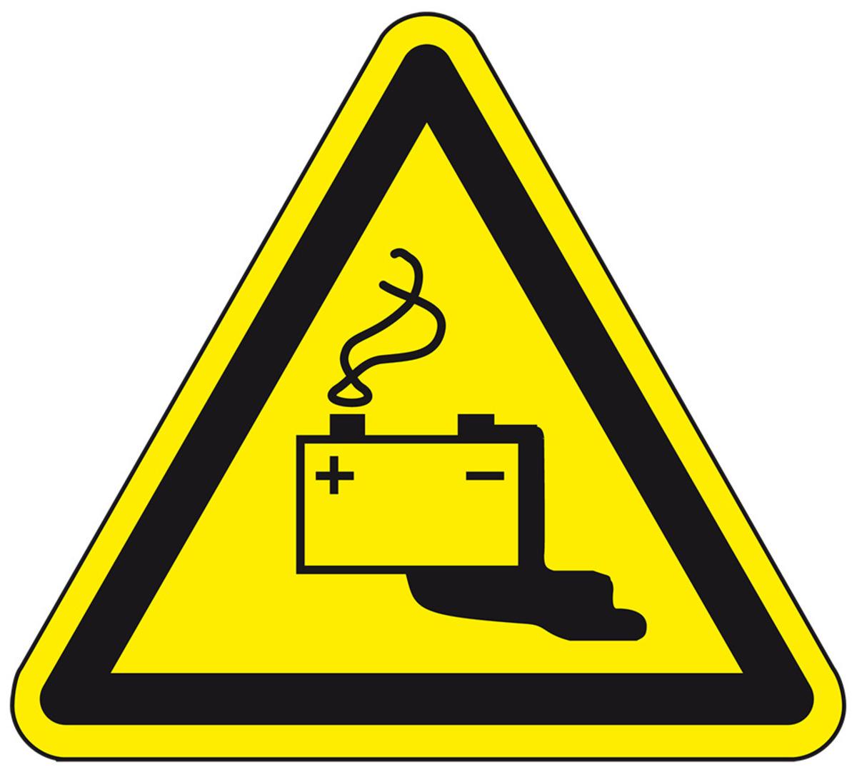 Gefahren müssen gut sichtbar gekennzeichnet werden. Mit dem Warnschild "Warnung vor Gefahren durch Batterien" weisen Sie auf bestehende Gefahren hin und tragen so zum Schutz Ihrer Mitarbeiter, Besucher und/oder Passanten bei.