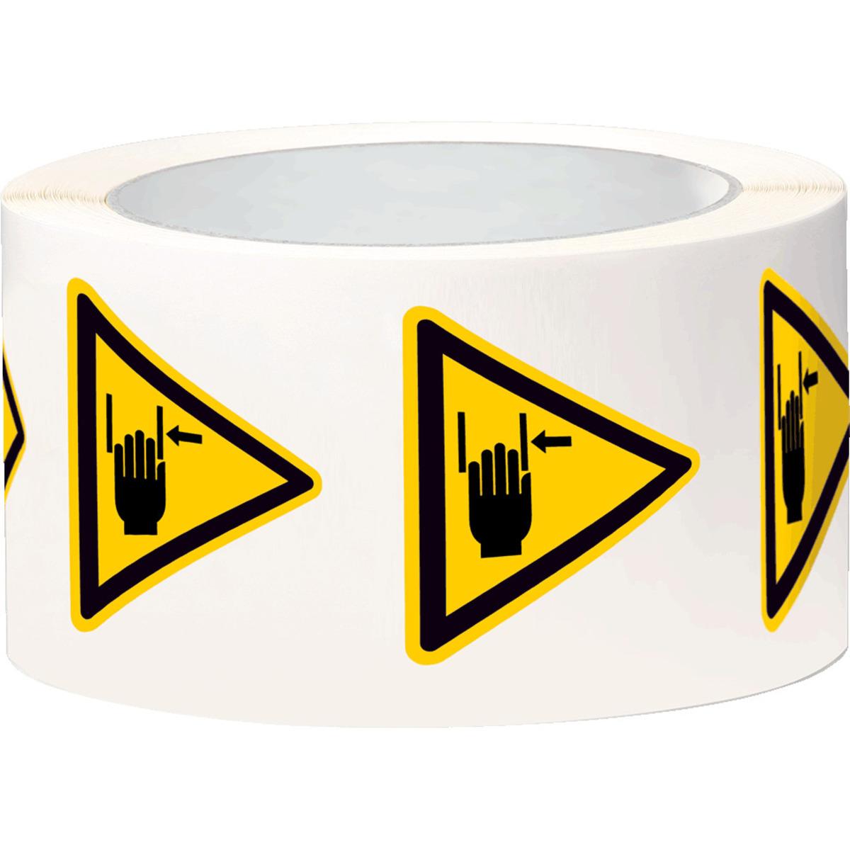 Auswahl: Warnschild Warnung vor Handverletzung, ASR/ISO, Folie, SL 50mm, 500/Rolle