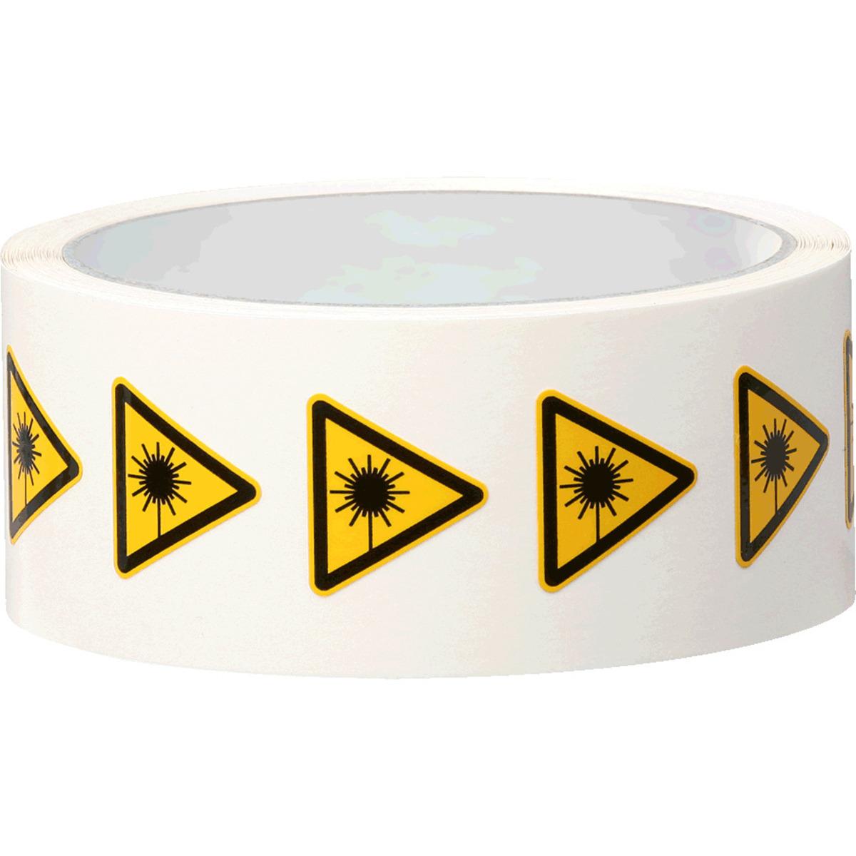 Auswahl: Warnschild Warnung vor Laserstrahl, ASR/ISO, Folie, SL 25mm, 500/Rolle