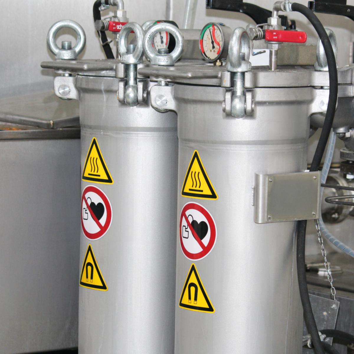 Gefahren müssen gut sichtbar gekennzeichnet werden. Mit dem Warnschild "Warnung vor magnetischem Feld" weisen Sie auf bestehende Gefahren im Anbringungsbereich hin und tragen so zum Schutz Ihrer Mitarbeiter, Besucher und/oder Passanten bei.