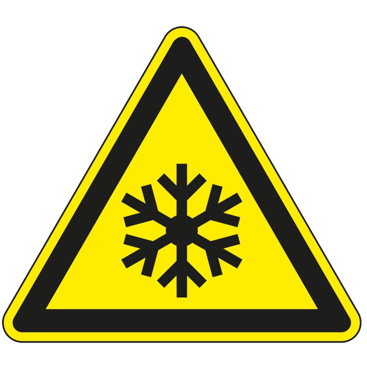 Auswahl: Warnschild Warnung vor niedr.Temperatur/Frost, ASR/ISO, Folie, selbstkl., SL 100mm