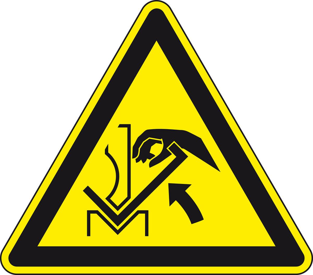 KSIGN Warnschild Warnung vor Quetschgefahr der Hand zwischen Presse und Werkstück ISO
