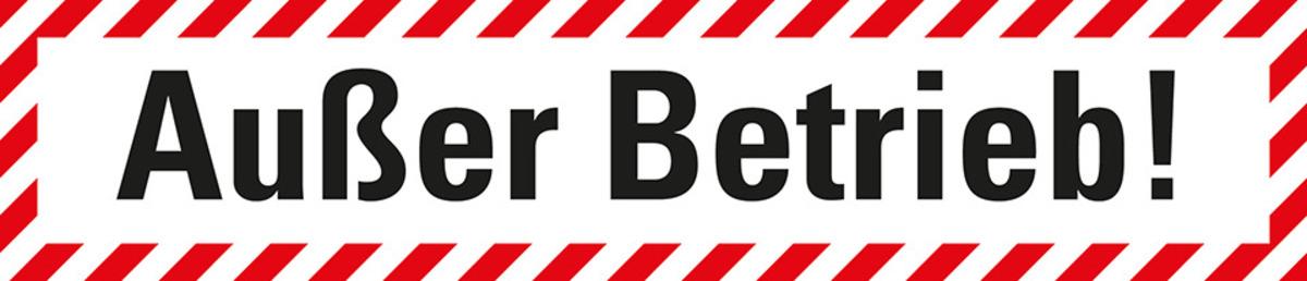 Auswahl: Wartungsaufkleber Außer Betrieb!, Folie, selbstklebend, 70x15mm, 10/Bogen