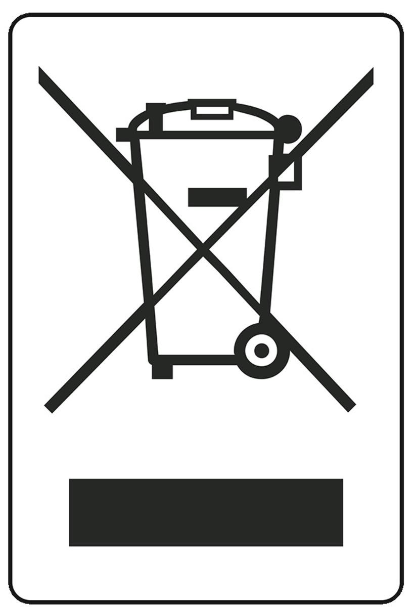 WEEE-Kennzeichen mit Balken, welches die Rücknahme und Recycling von Elektroaltgeräten regelt.