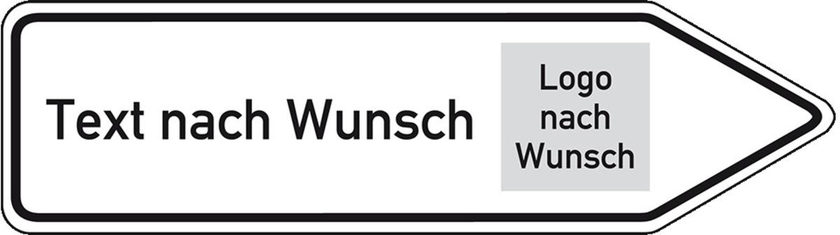 Auswahl: Wegweiser rechtsweisend, Text nach Wunsch.links/Logo nach Wunsch.rechts, Aluminium RA0, 1400x350mm