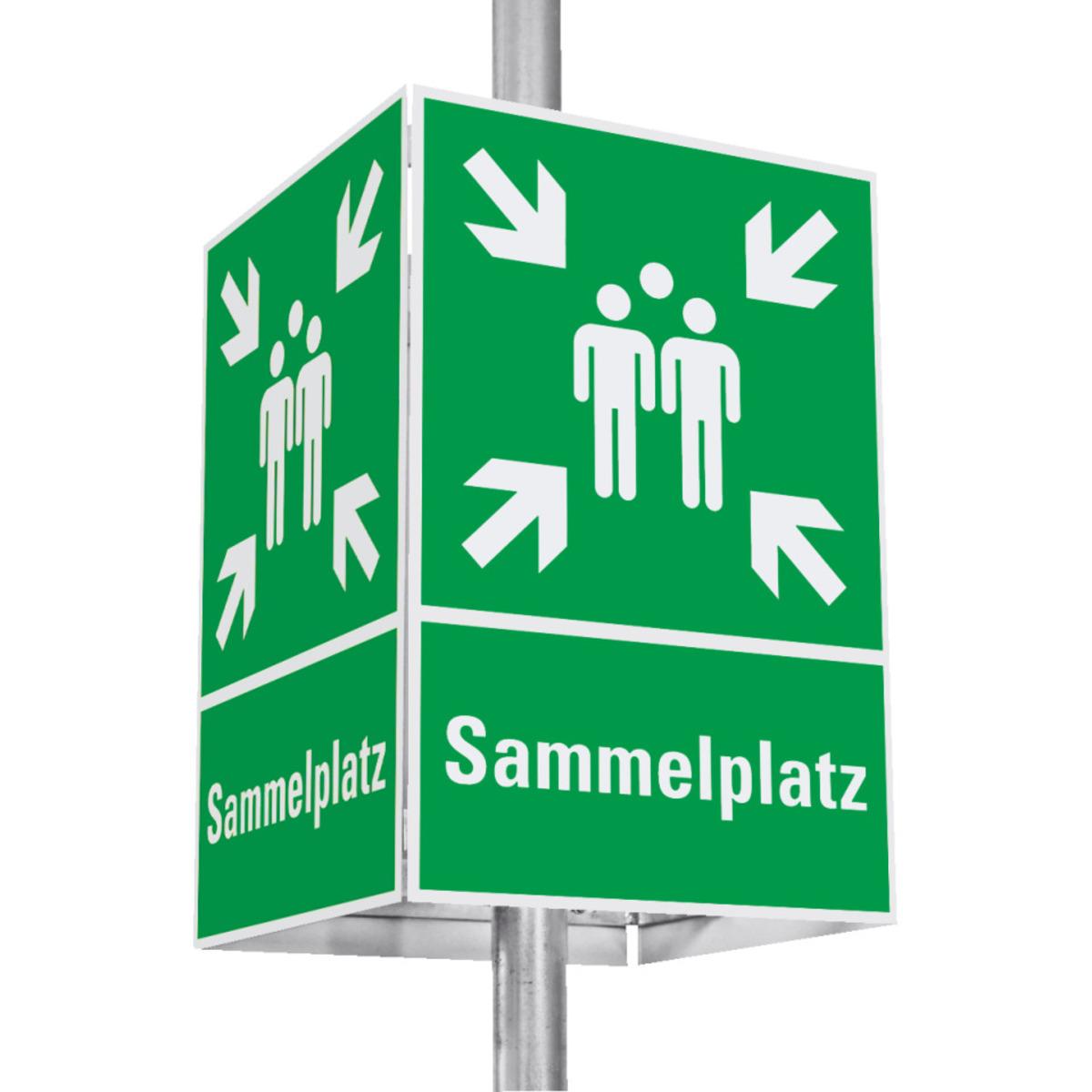 Auswahl: Würfelset Rettungszeichen Sammelstelle, Aluminium, 400x600mm, inkl. Befestigung