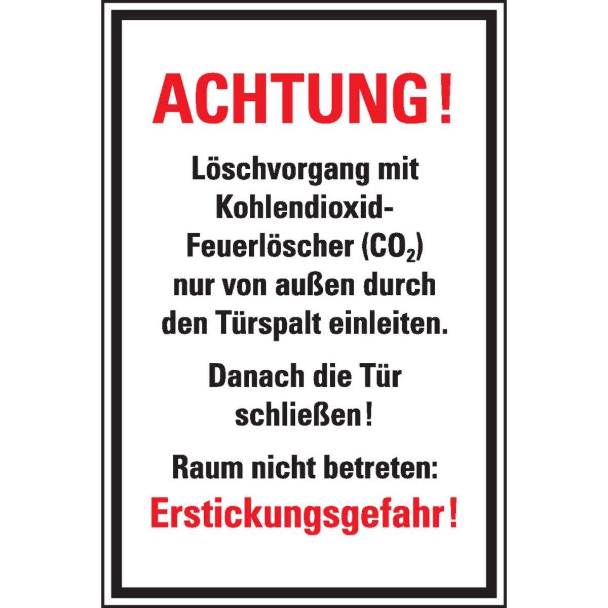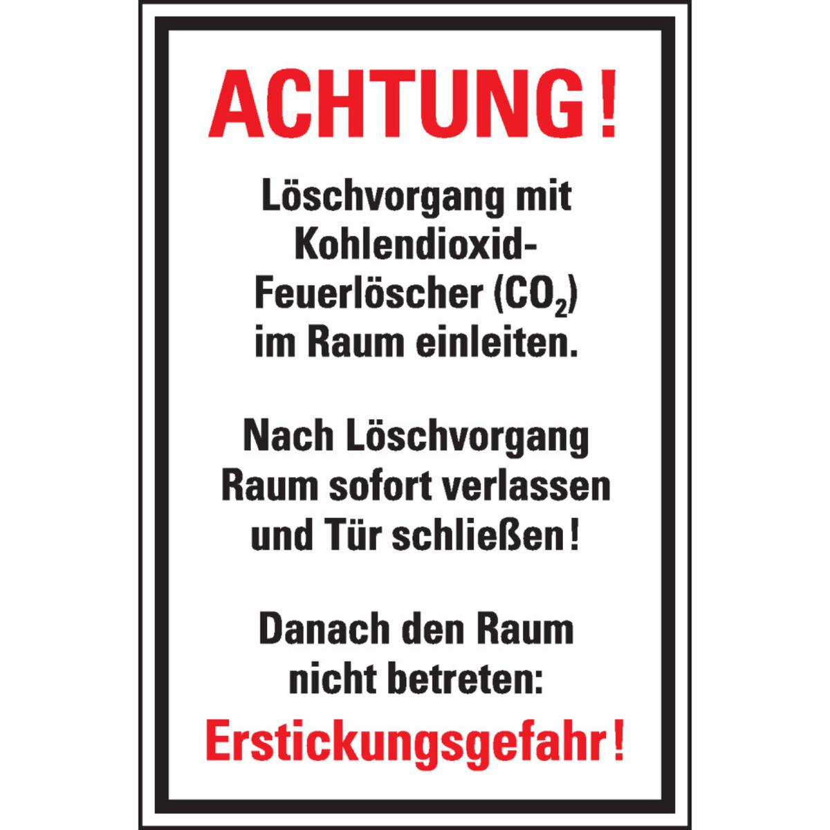 KSIGN Zusatzschild Löschvorgang mit Kohlendioxid-Feuerlöscher (CO2) im Raum einleiten selbstklebende Folie