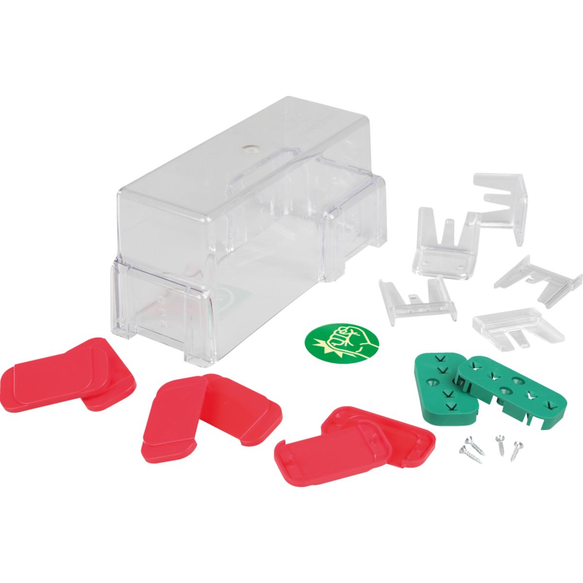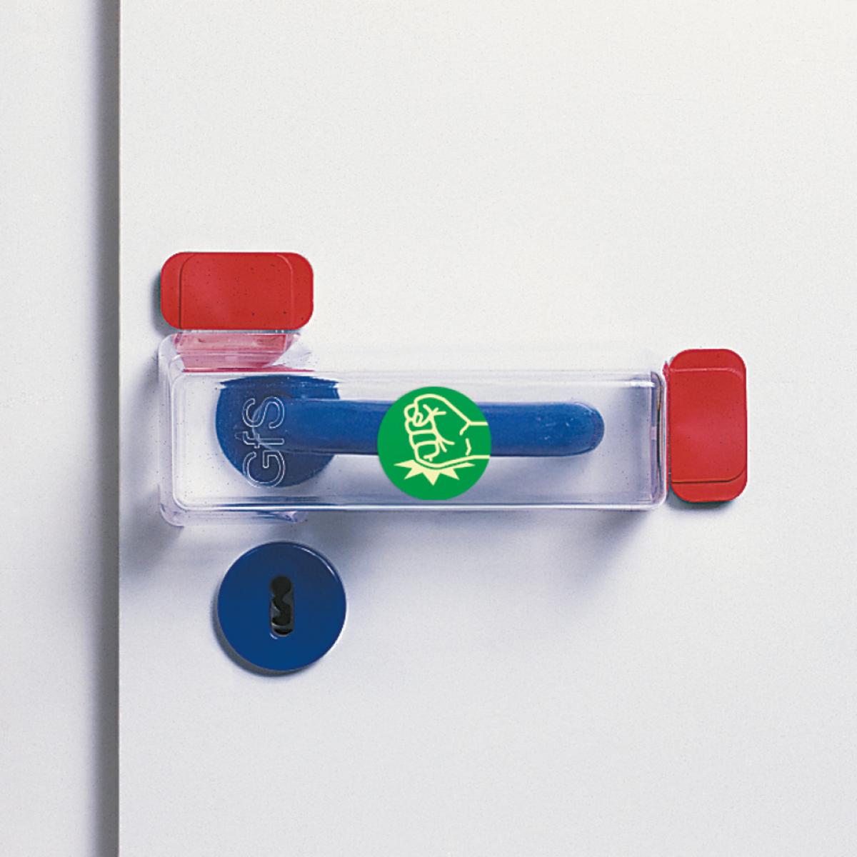 Kunststoffhaube und Ersatzelemente zur Absicherung für Türklinken.
