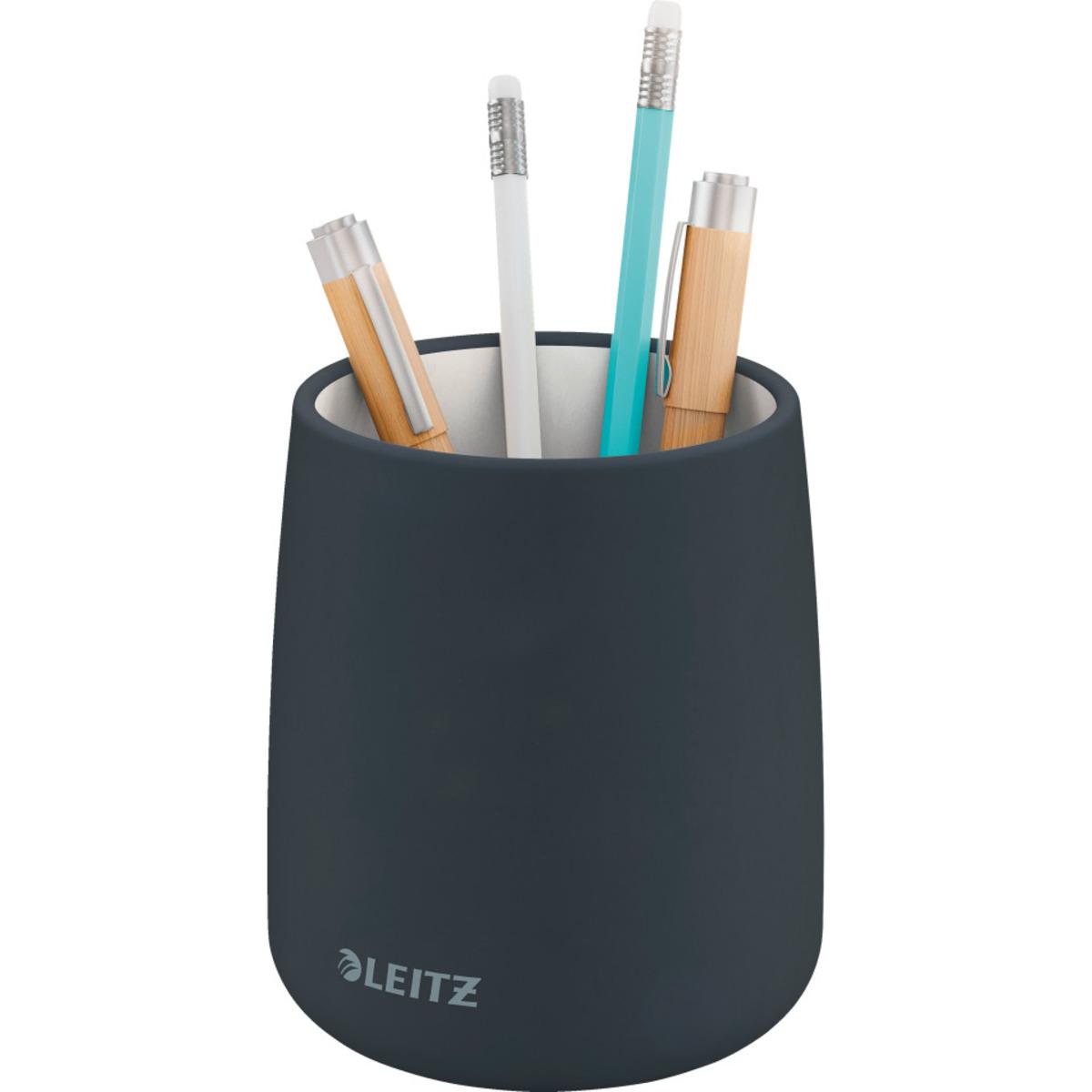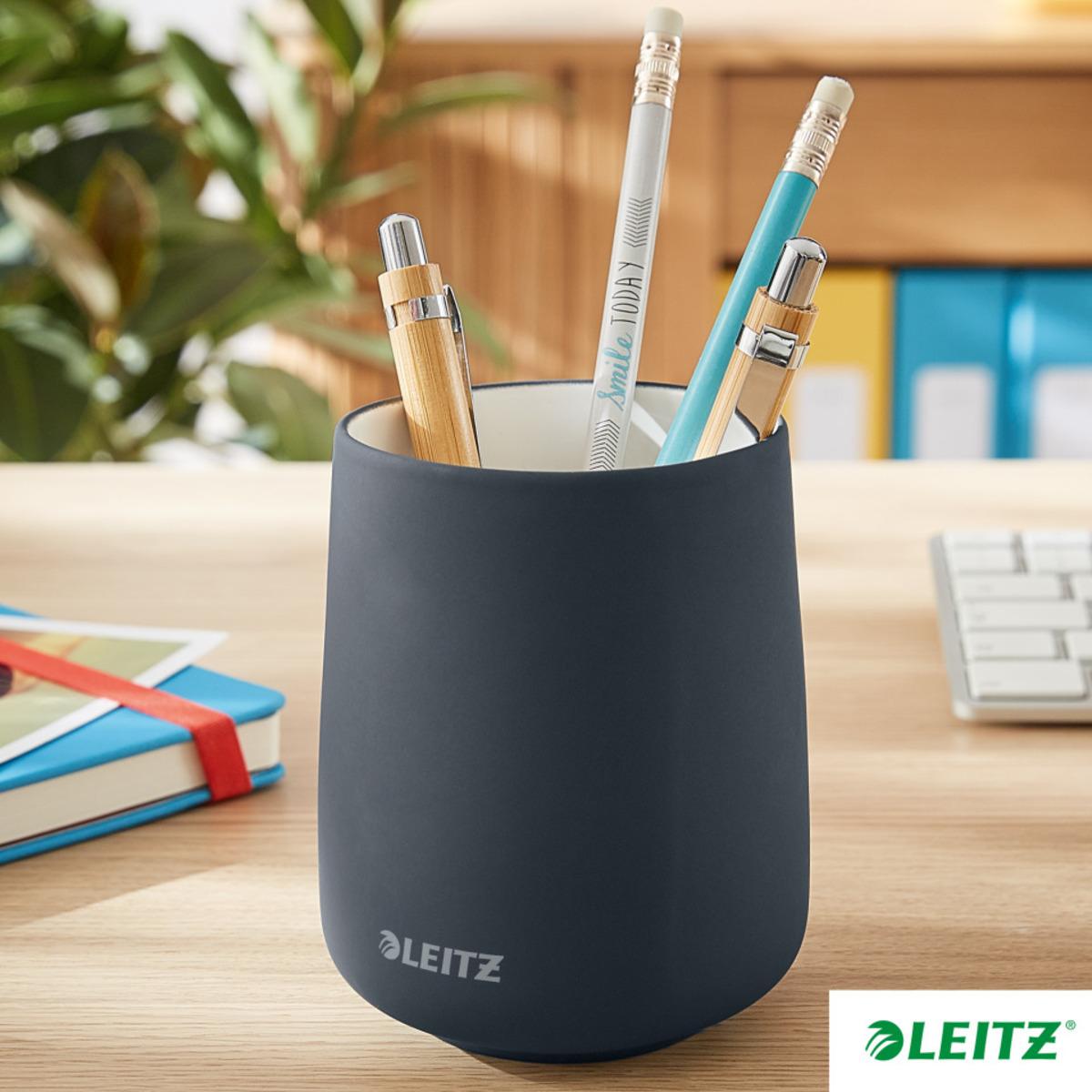 LEITZ Cosy Stifteköcher für den Schreibtisch für die Aufbewahrung von Stiften, Linealen oder Scheren, sicherer Stand dank des Materialgewichts, die hochwertige matte Oberfläche lässt sich leicht reinigen und ist für den täglichen Gebrauch geeignet.