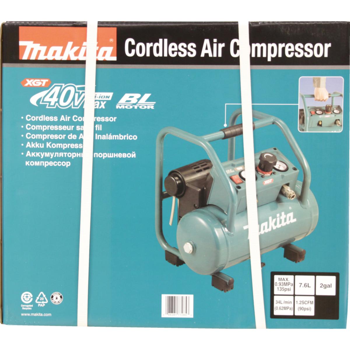 Auswahl: Makita Akku Kompressor AC001GZ, geräuscharm 9, 3 bar, 12, 8kg, 302x434x382mm