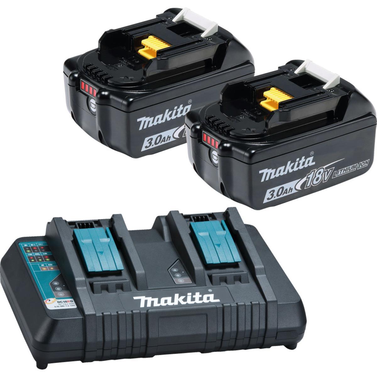 Auswahl: Makita Doppel-Schnellladegerät DC18RD, mit 2 Akkus-BL 1830B (3Ah)