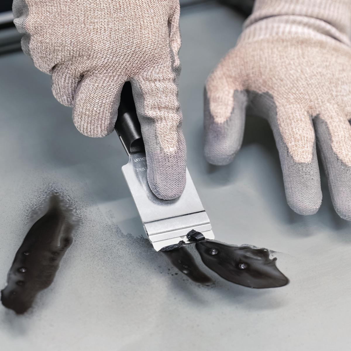 Der SCRAPEX ARGENTAX mit großem, abgerundentem Griff, überzeugt als klassischer Schaber für Etiketten und Abkleber.