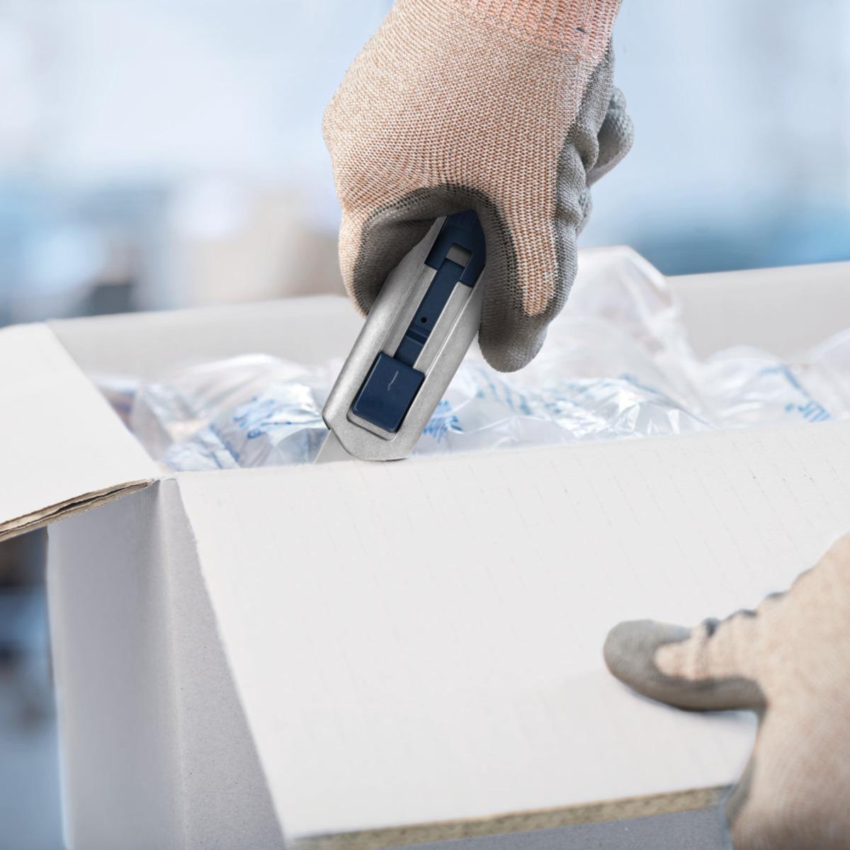 Das MARTOR Messer SECUNORM Profi40 MDP ist ein echter Profi, wenn es z. B. um das Öffnen von Säcken aller Art geht. Dafür bringt das SECUNORM Profi40 eine besonders große Schnitttiefe mit weitem Klingenaustritt und einen automatischen Klingenrückzug mit. Zudem ist es unlackiert und metalldetektierbar. Ideal für Branchen, die Fremdkörper und dadurch verursachte Störungen im Produktionsablauf vermeiden wollen.
