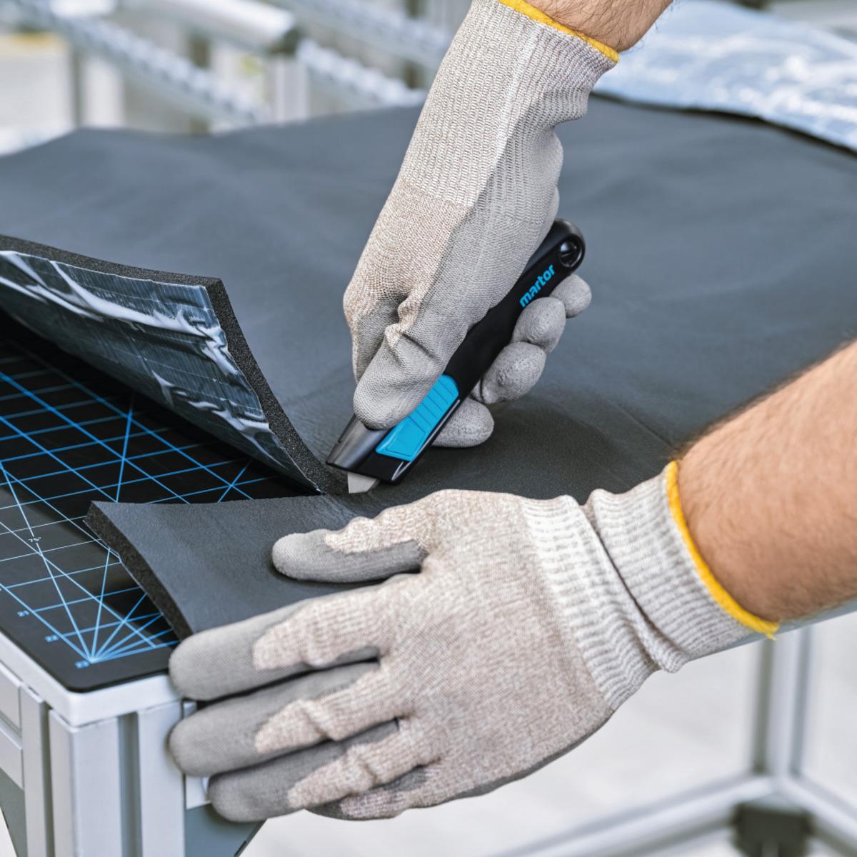 MARTOR Sicherheitsmesser SECUPRO MEGASAFE, ideal zum Schneiden mit Schutzhandschuhen geeignet. Hoher Arbeitsschutz durch vollautomatischen Klingenrückzug nach dem Schneiden.