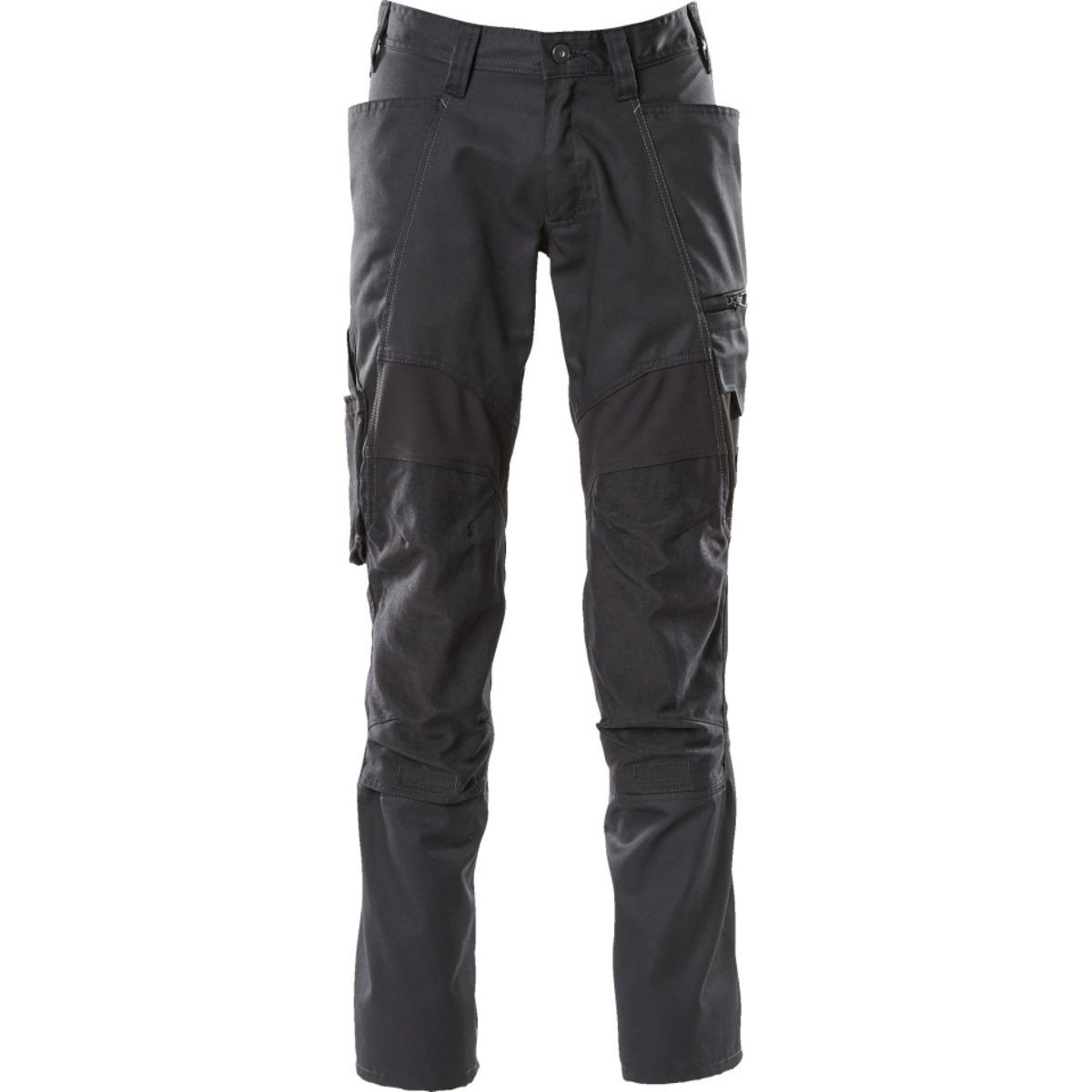 Bequeme MASCOT® ACCELERATE Bundhose mit elastischen Einsätzen für viel Bewegungsfreiheit, niedrige Taille, ergonomisch geschnittene Beine, regulierbare und strapzierfähige Knietaschen für den Einsatz von Kniekissen, Doppelnähte an den Beinen und im Schritt, Gürtelschlaufen, Hosenschlitz mit Reißverschluss, Vordertaschen, Gesäßtaschen, Schenkeltasche mit Handytasche, Patte, verdecktem Druckknopf und integriertem ID-Kartenhalter (abnehmbar), Zollstocktasche aus CORDURA mit extra Taschen