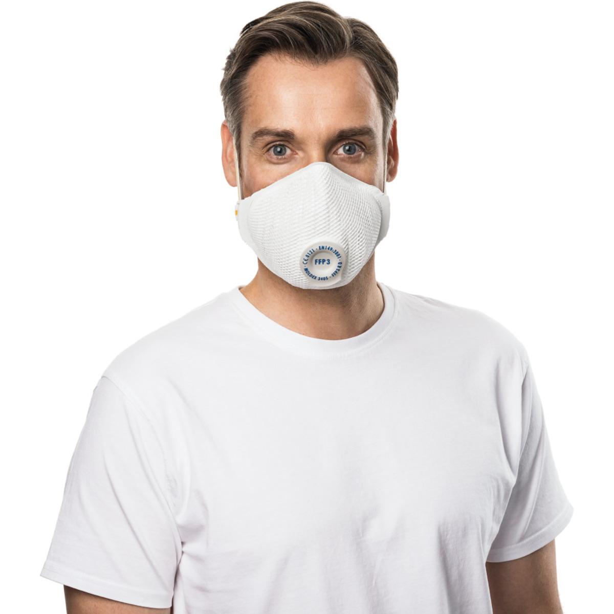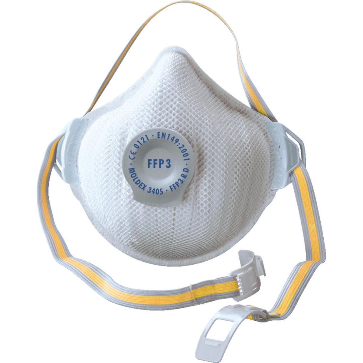 Wiederverwendbare, partikelfiltrierende Feinstaubmaske Moldex 3405 FFP3R D mit Ausatemventil für zuverlässigen Schutz vor luftgetragenen Gefahren, mit Klimaventil für weniger Atemwiderstand, Hitze und Feuchtigkeit, abwaschbare und bequeme Runddichtlippe