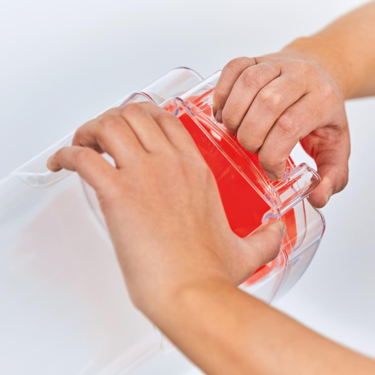 ergonomische Passform, farbig sortiert, hohe Trägerakzeptanz, hygienische Produktentnahme, sitzt dauerhaft