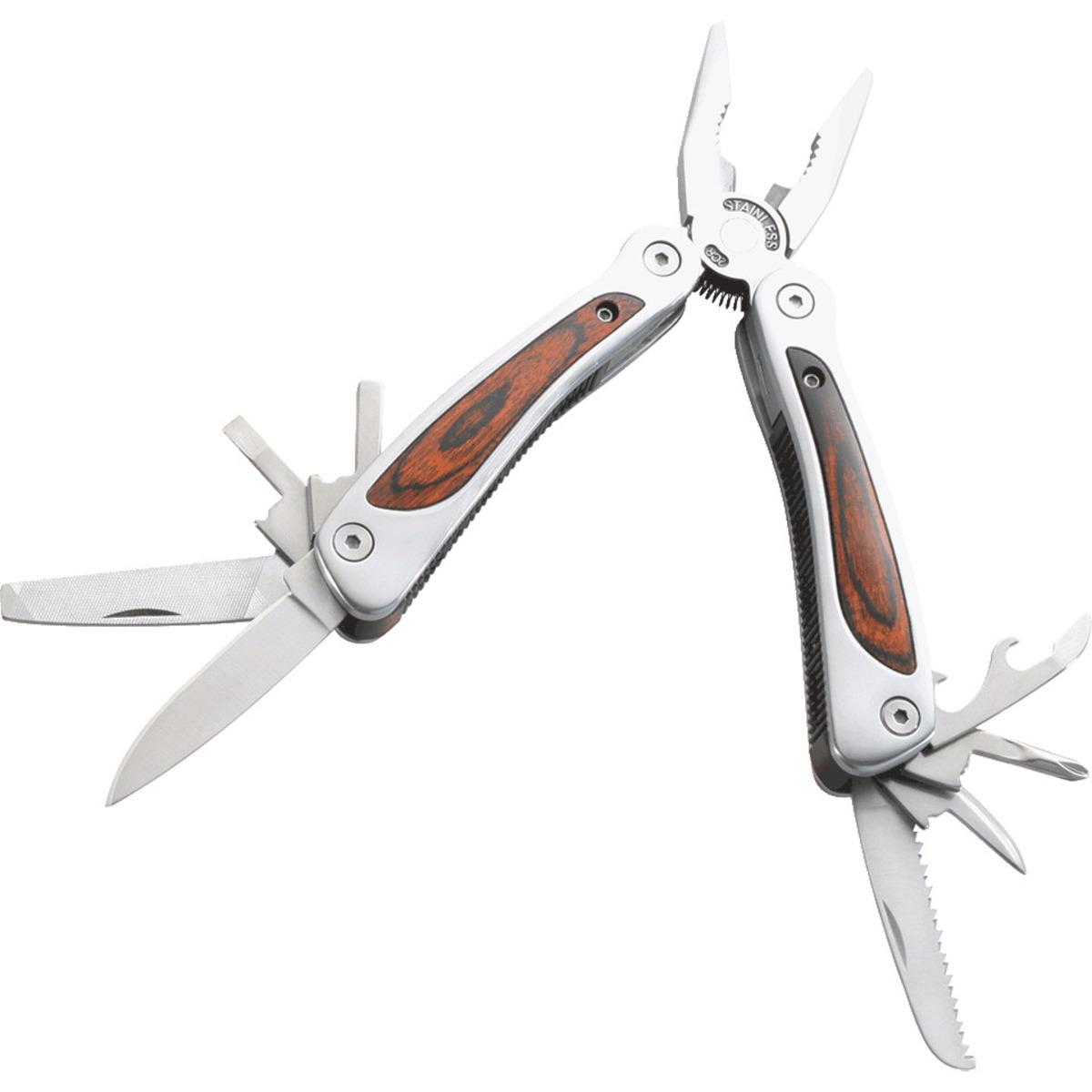 Handliches Multitool Werkzeugset mit Spitzzange, Klinge, Säge, Flaschenöffner, Schraubendreher, Bitadapter, Feile und Seitenschneider