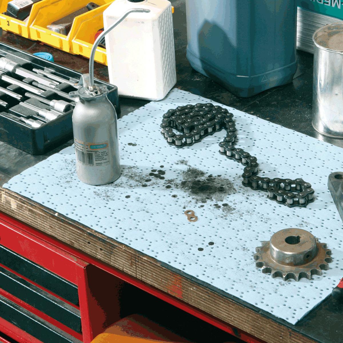 Saugtücher zur leistungsstarken Aufnahme von Öl und Benzin.