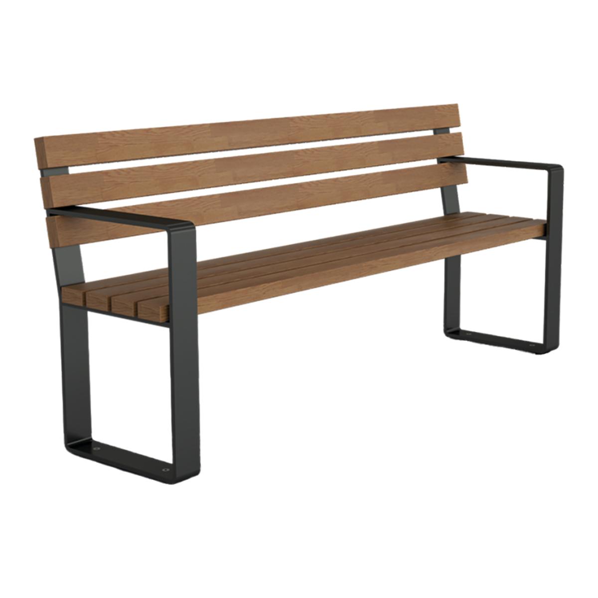 Auswahl: Schake Parkbank mit Lehne, Flachstahl, Hartholz, 1800x420x800mm, Sitzhöhe:450mm