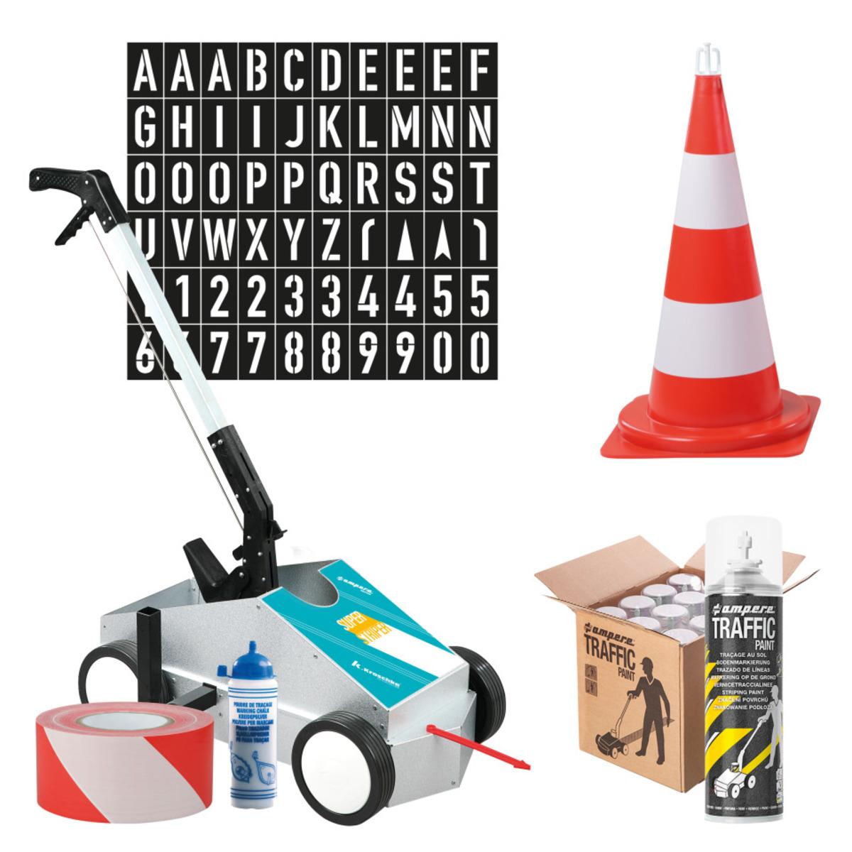 Auswahl: Parkplatz-Markierungs-Set Safety Maxi, Kegel, Absperrb., Markiergerät, Farbe, Schab.