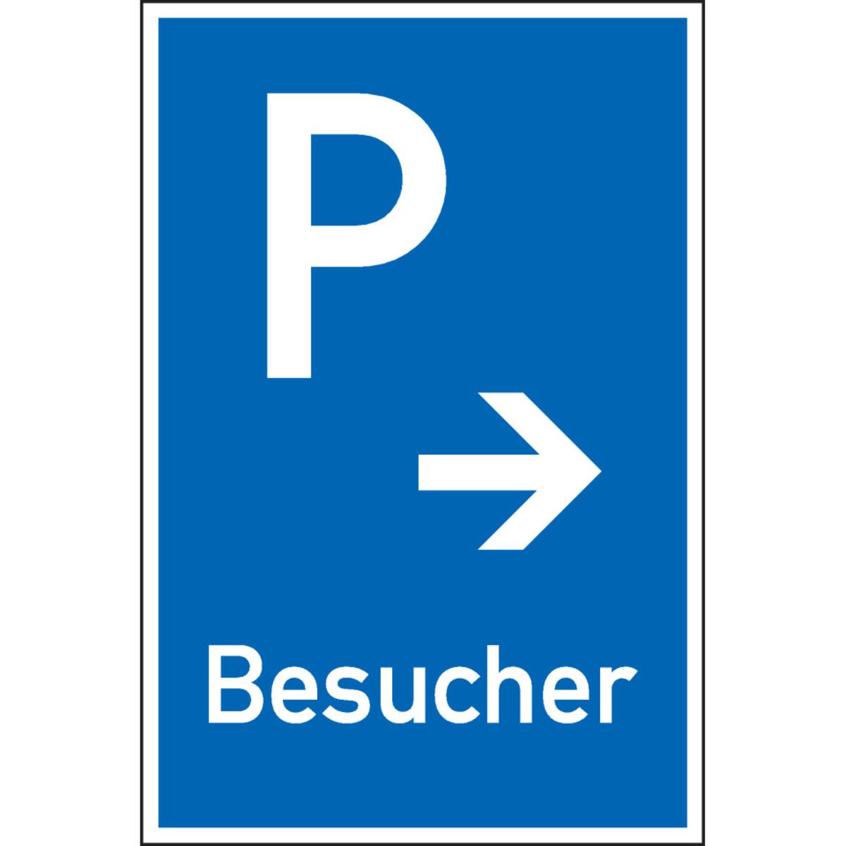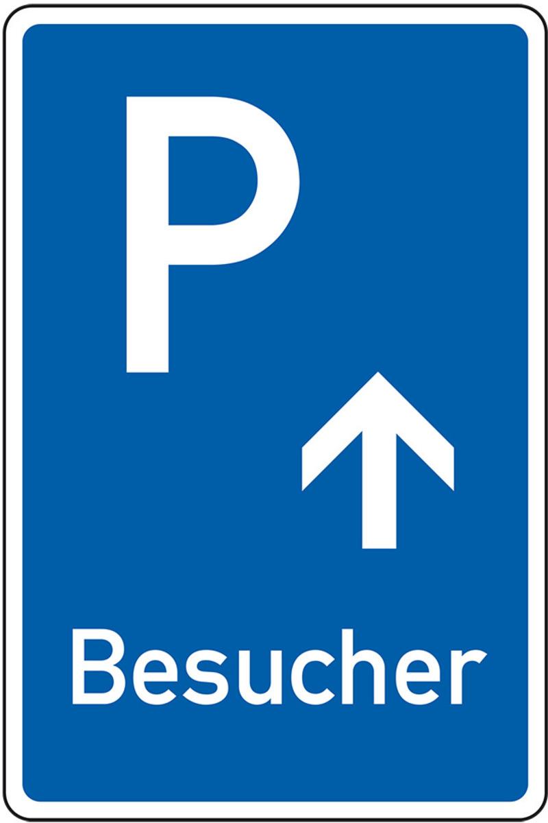 Auswahl: Parkplatzschild Besucher mit Pfeil geradeaus, Aluminium, 400x600mm