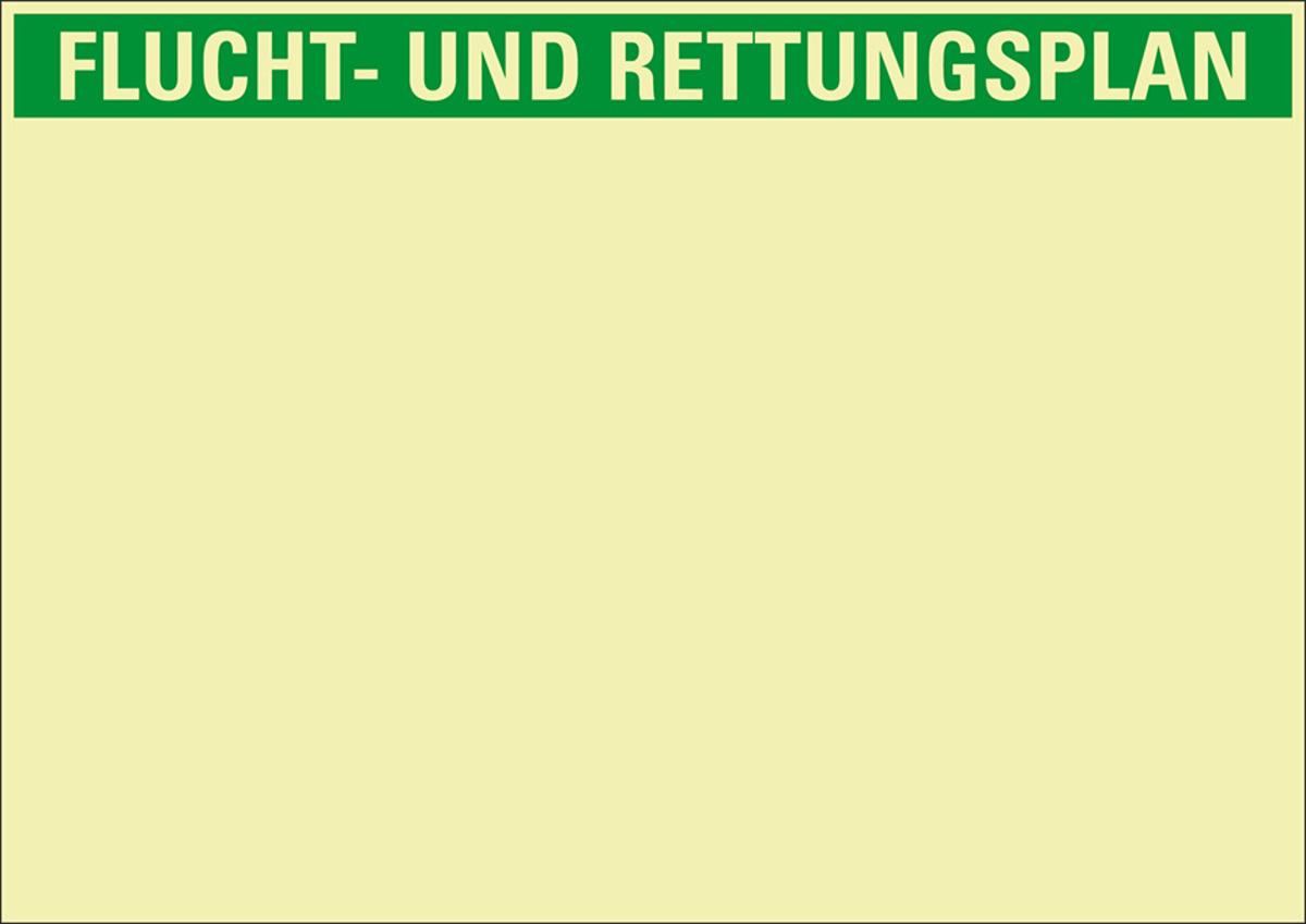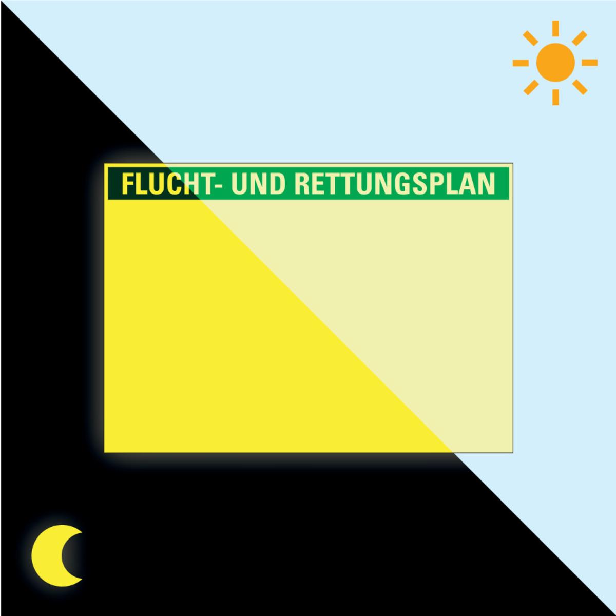 Lang nachleuchtender PERMALIGHT® Planträger mit aufgedruckter Überschrift für die Erstellung eines Flucht- und Rettungsplans.