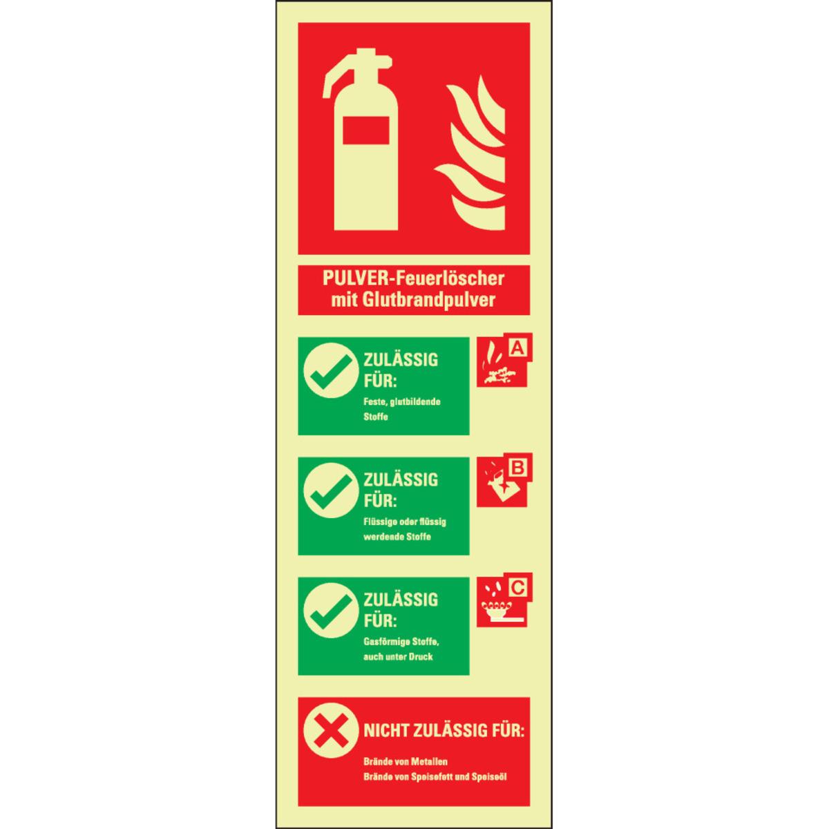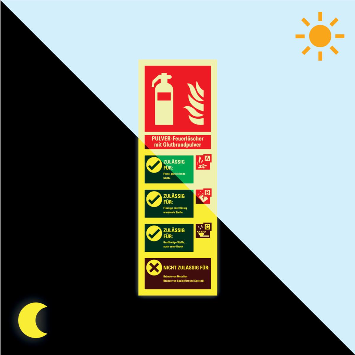 Lang nachleuchtender PERMALIGHT® Aushang für Pulver-Feuerlöscher, geeignet für optische Sicherheitsleitsysteme