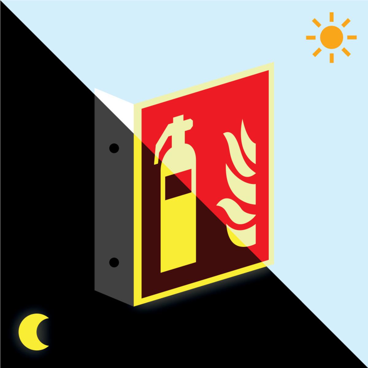Langnachleuchtendes PERMALIGHT® Brandschutz-Nasenschild zur Standortkennzeichnung von Feuerlöschern