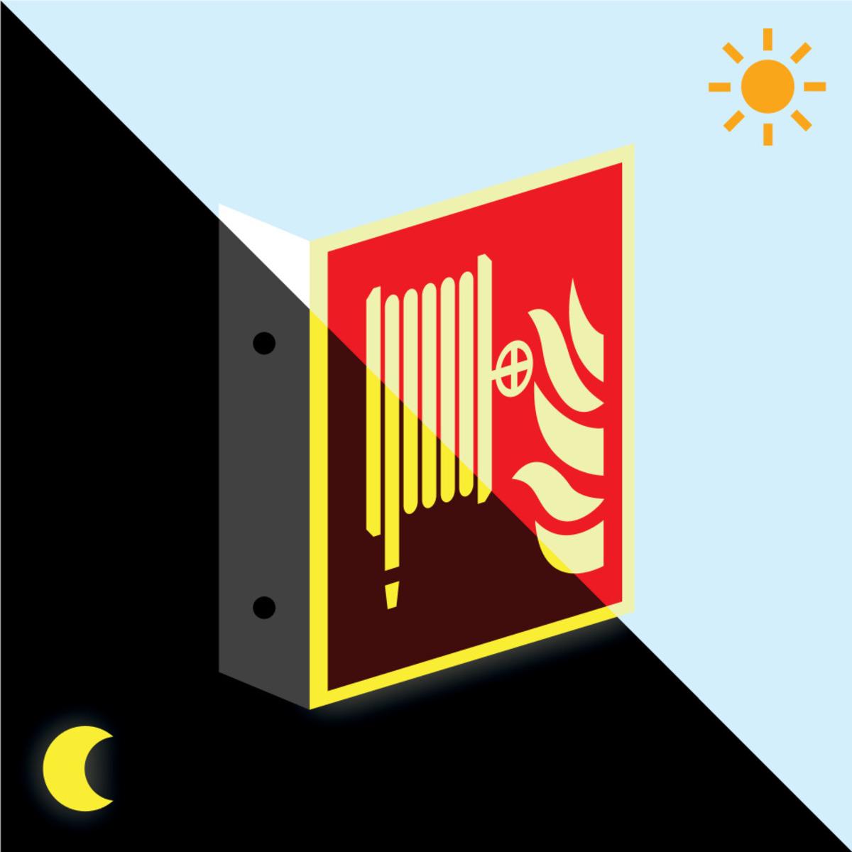 Langnachleuchtendes PERMALIGHT® Brandschutz-Fahnenschild zur Standortkennzeichnung von Löschschläuchen
